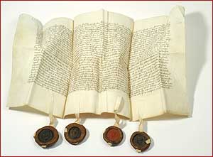 ((AbI_62_offen)) Der Würzburger Bischof Johann II. von Brunn und sein Hofmeister Erkinger v. Seinsheim vermitteln einen Schiedsspruch zwischen Leonhard Graf zu Castell und Friedrich Schenk von Limpurg über die Teilung des Schlosses Speckfeld und die Verwaltung der Zölle und Lehen (Würzburg, 31. Januar 1413).