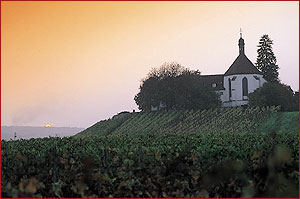 Mit der romantischen Naturbegeisterung im 19. Jahrhundert erhielt die Vogelsburg mit der wunderbaren, sie umgebenden Natur eine neue Funktion: Sie wurde Zentrum des Fremdenverkehrs an der Mainschleife. So berichtet Eugen Schön 1833: Die Vogelsburg sei einer der Lieblingspunkte in Franken für unsere allverehrte Königin Therese, auf dem sie als Kronprinzessin, sich im Freien an der prächtigen Aussicht öfters ergötze. Nach der Säkularisation von 1803 wurde das gesamte Areal der Vogelsburg vom Staat verkauft. Der Castell’sche Archivar Wilhelm Viehbeck rettete die Castell’schen Grabmäler und brachte sie 1809 in die Kirche nach Rüdenhausen. Seit 1895 war die Vogelsburg im Eigentum der Familie Walther. Am 1. Januar 1957 verpachtete Philippine Walther das gesamte Anwesen an die “Gemeinschaft der Augustinus-Schwestern”, die nach ihrem Tod Eigentümer wurde. Mit der Altarweihe am 24. November 1957 war der Umbau vollendet; 1975 wurde der Innenraum der Kirche im schlichten modernen Stil neu gestaltet. Die Augustinus-Schwestern richteten nach Umbau und Erweiterung eine Tagesstätte ein, bewirtschaften das Ausflugslokal und betreiben naturgemäßen Weinbau. Wie Weinbaulandschaft und Kunst zur Einheit verschmelzen, erlebt der Betrachter außerhalb und innerhalb des Gotteshauses der Vogelsburg. Was man auf der Aussichtsterrasse als reale fränkische Kulturlandschaft gesehen hat, erfährt man im Innern des Gotteshauses in der christlichen Bildkultur des modernen, von Lucas Gastl geschaffenen Mittelfensters des Chores, das zugleich auch das Hochaltarbild ist. Die materielle Welt der Gegenwart, der Lebensraum der Winzer um die Vogelsburg, gezeichnet in dunklen Erdfarben, ist verbunden mit der geistigen Welt, der Welt Gottes in hellen Farben. Der Hl. Augustinus vertritt die hierarbeitenden Menschen vor Gott und betet um dessen Segen. So treffen sich im Bild die materielle Welt und die geistige Welt, die kurzlebige Gegenwart und die Ewigkeit. G.E.
